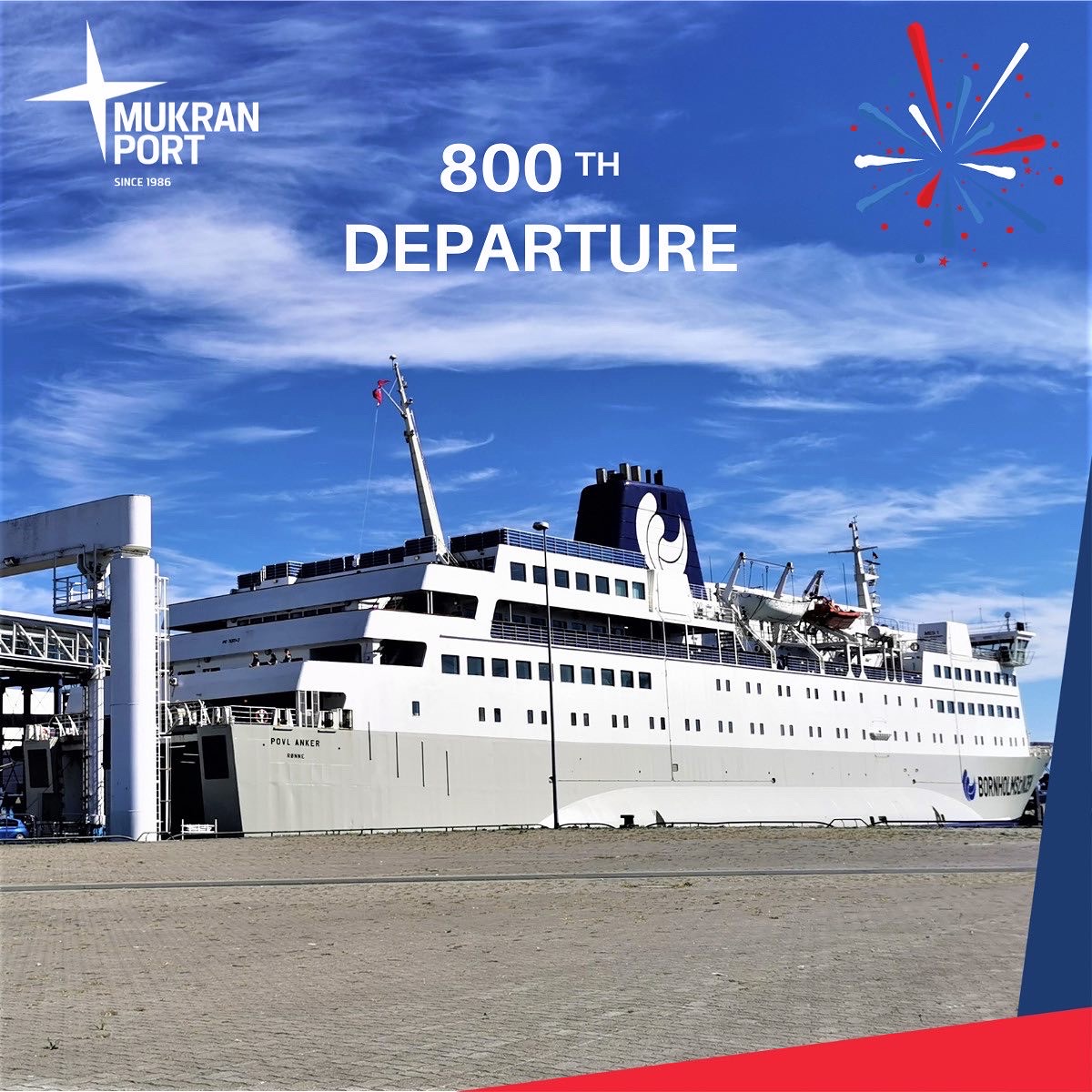 Sassnitz - Mukran, 26. September 2022 — Seit Start der Fährverbindung im September 2018 zwischen Mukran und Roenne (Bornholm) sind bereits 800 Abfahrten mit der HAMMERSHUS und der POVL ANKER gemeinsam ab Fährhafen Mukran erfolgreich absolviert worden.