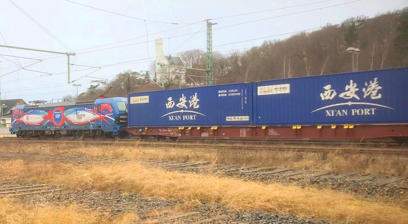 Sassnitz-Mukran, 10.Februar 2022 - Die Elektro-Lok vom Typ Siemens Smartron der EGP mit der Kennung "192 103" [NVR-Nummer: 91 80 6192 103-0 D-EGP], allerseits bekannt als die „Drachenlok“ ist wieder mit Containern der Baltic Sea Bridge unterwegs von Mukran nach Hamburg.