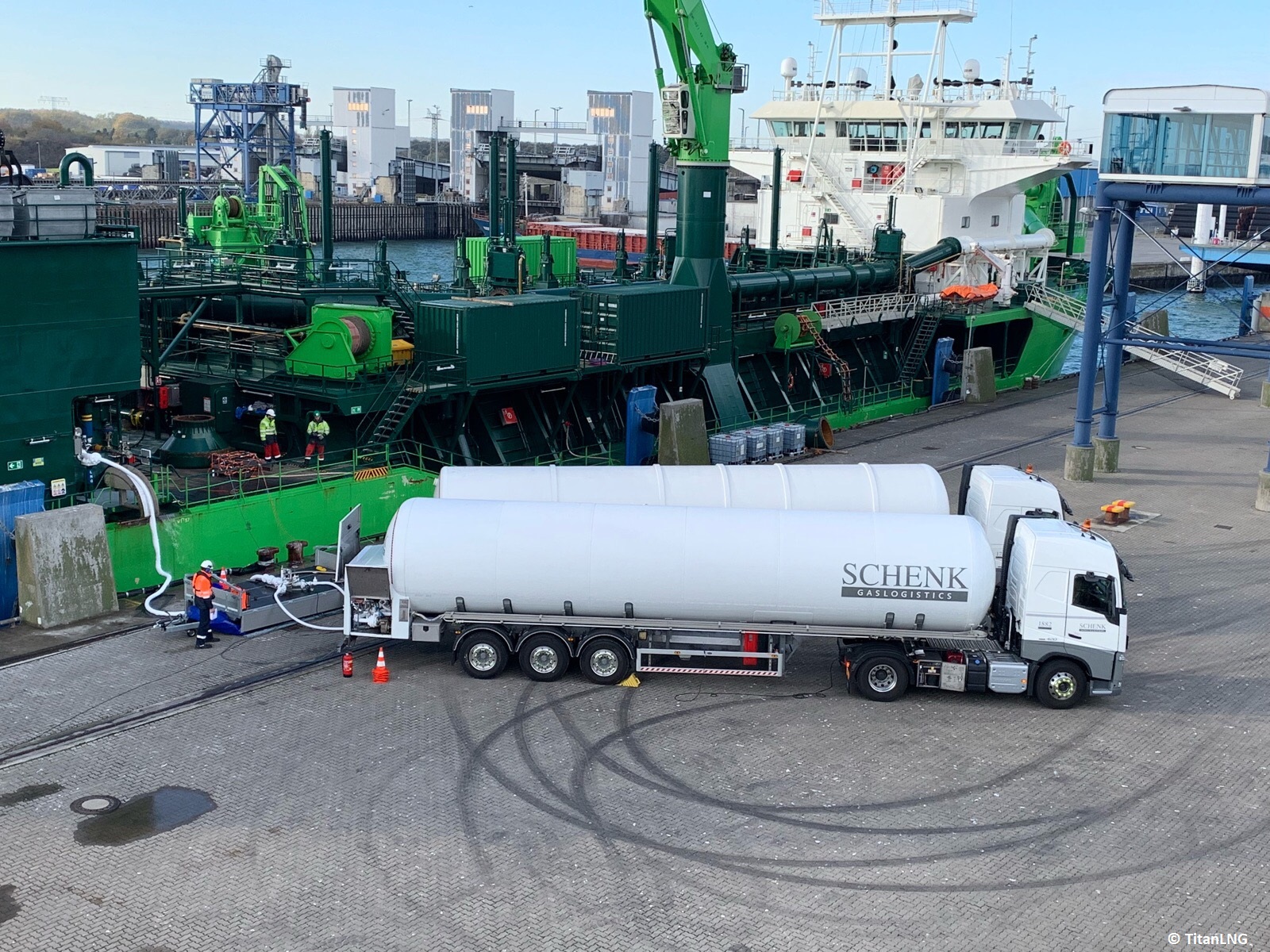 Den Artikel der Titan LNG finden Sie hier: http://titan-lng.com/de/erste-lieferung-von-titan-lng-im-deutschen-mukran-port-demes-baggerschiff-schiff-scheldt-river-erhaelt-lng-aus-7-lkw/