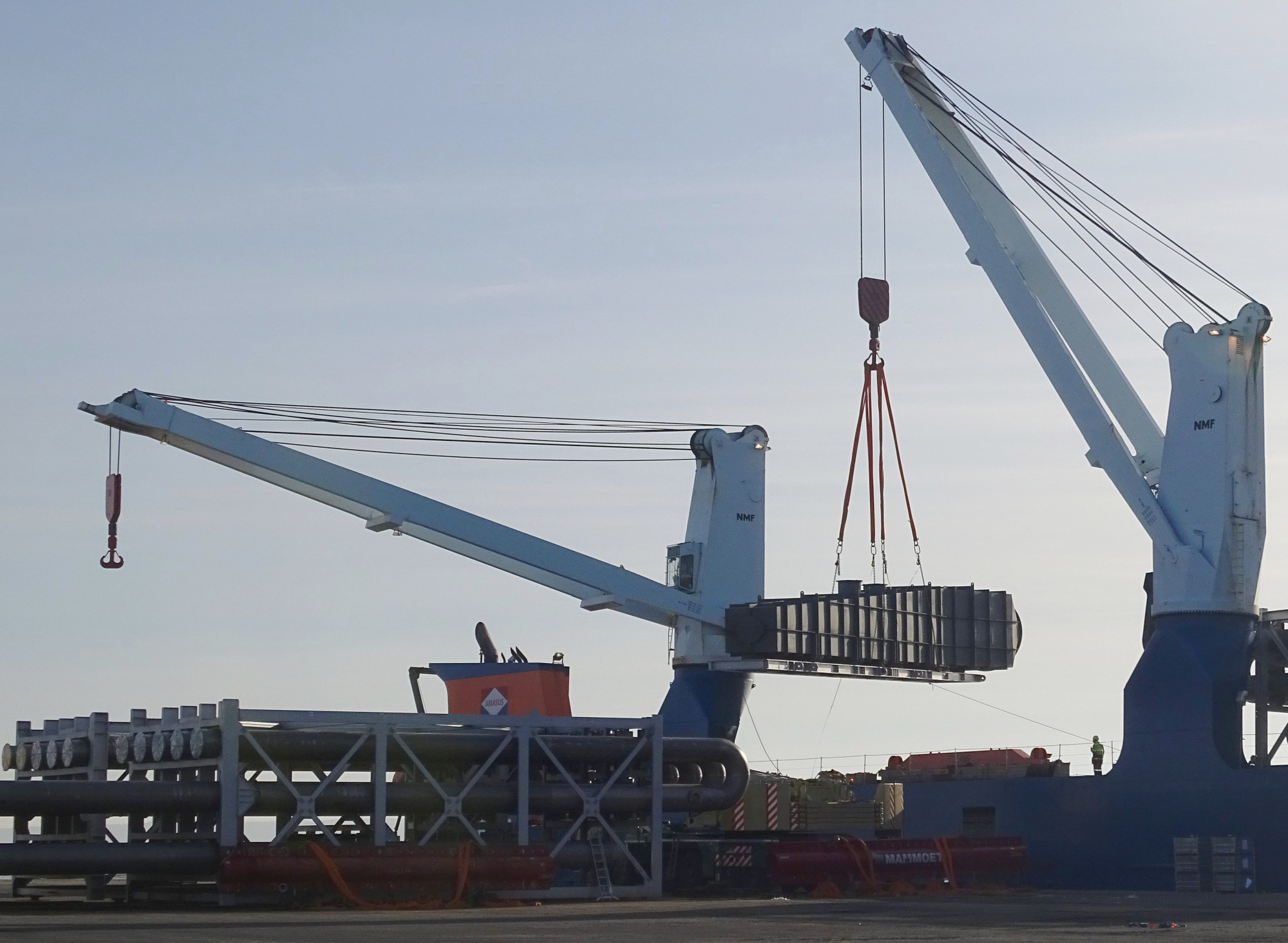 Mit seinen großzügigen Produktions- und Lagerflächen bietet der Hafen zudem ideale Bedingungen für die Fertigung der riesigen Einzelteile. Neben der Fertigung der Skids wurden auch vorgefertigte Kanäle auf einem Stahlbaurahmen montiert und verschweißt. Allein die Skids wiegen zwischen 70 Tonnen und 100 Tonnen je Stück und sind doppelt so groß wie ein Lkw. Die fertigen Kanäle wiegen pro Stück 33 Tonnen.