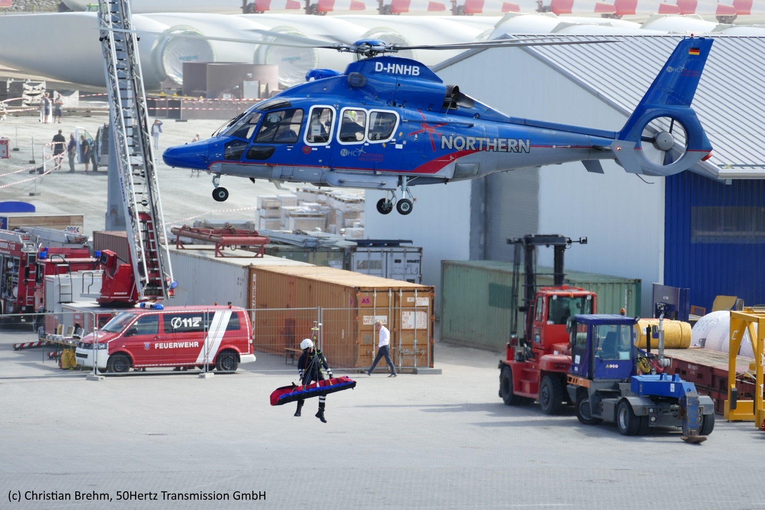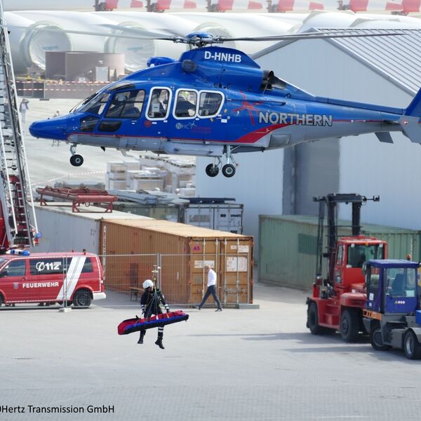 Besonderes Interesse entfiel auch dieses Jahr wieder auf die Hafenrundfahrten mit dem Crew Transfer Schiff sowie die Bus Touren zum Service Hafen von Iberdrola und E.on. Ein Highlight der Faszination Offshore Wind 2018 war darüber hinaus die Vorführung des Hubschraubers der Luftrettung aus Güttin, welcher im Anschluss der Flugshow für Interessierte am Boden zu bestaunen war. Einen einzigartigen Ausblick konnten schwindelfreie Besucher aus rund 40 Metern Höhe von der Aussichtsplattform eines Mobilkrans genießen.