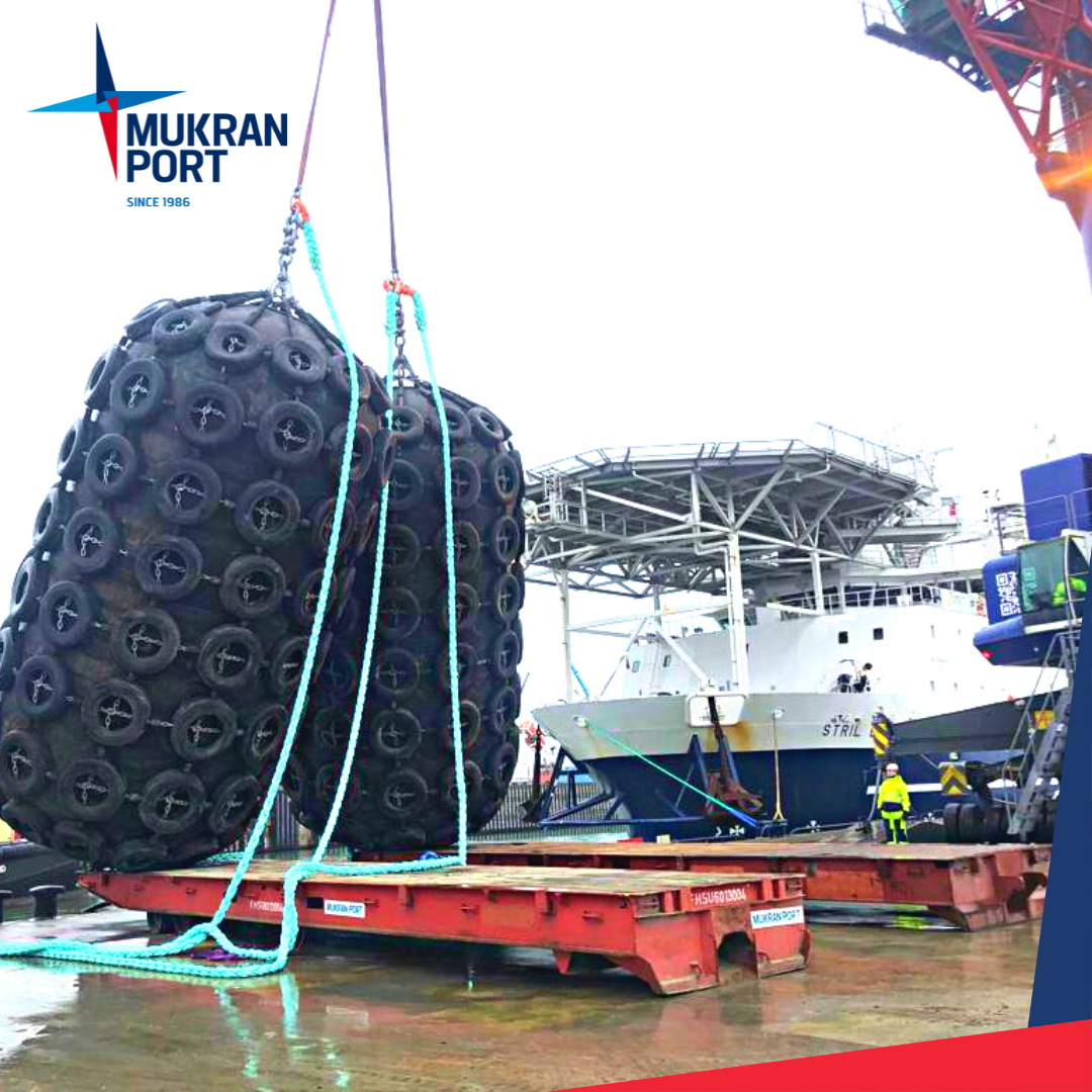 Sassnitz-Mukran, 26. Mai 2023 – Mukran Port Terminals (MPT) bietet zahlreiche Dienstleistungen für Firmen im Offshore-Bereich an. Für die Umladungen „Schiff zu Schiff“ werden überdimensionale Fender auf dem Gelände von MPT gelagert und nach Beauftragung vom Kunden dem Schlepper bereitgestellt. Nach Beendigung des Einsatzes werden die Fender zurück in den Hafen gebracht und durch MPT wieder eingelagert.