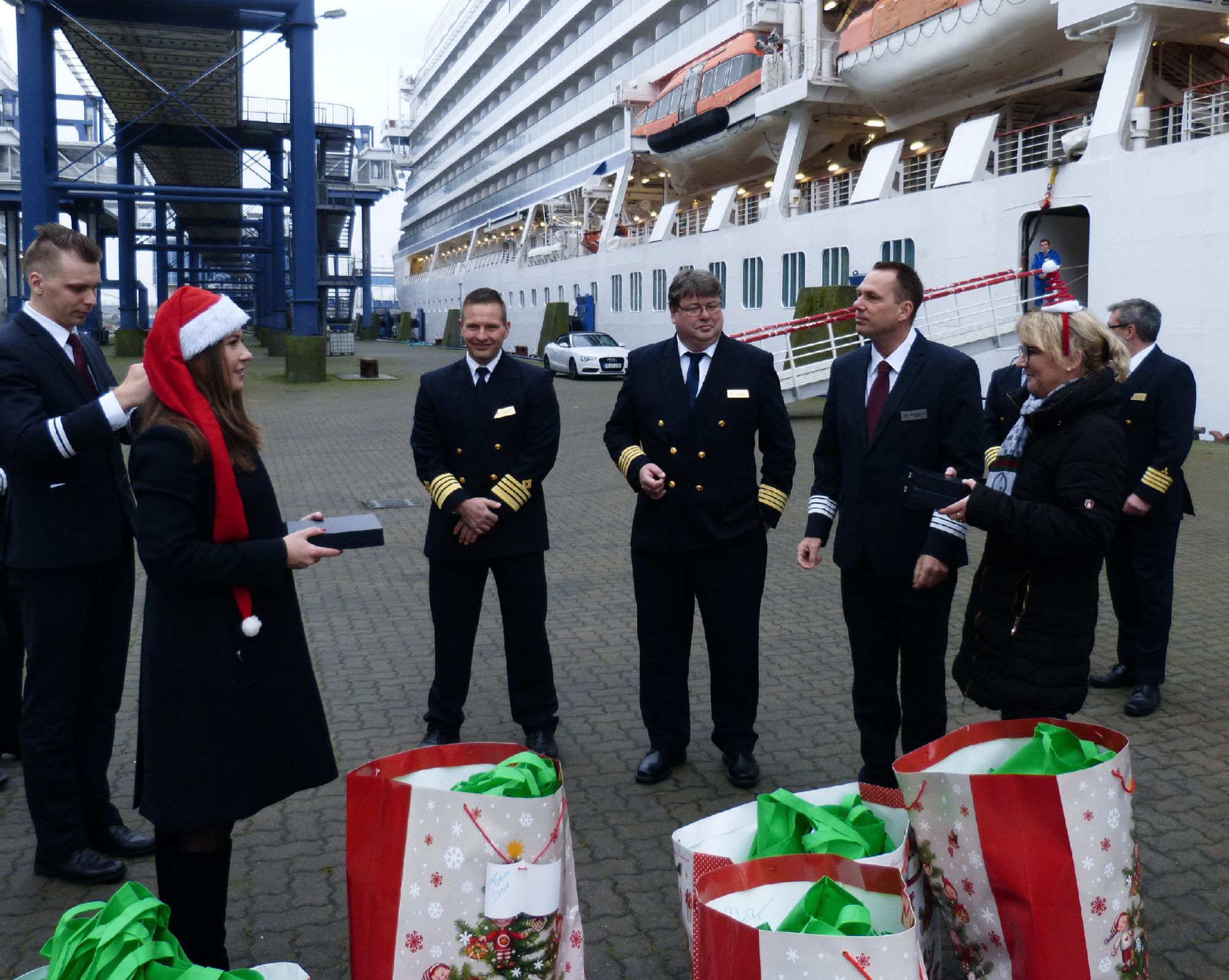 Sassnitz-Mukran, 17.12.2020 — Aufgrund der Maßnahmen zur Eindämmung der Corona-Pandemie fällt im Mukran Port sowie im Stadthafen Sassnitz derzeit der Landgang für die Schiffsbesatzungen aus. Um den Seeleuten in dieser Situation eine kleine Freude zu machen, hat der Port Sassnitz-Mukran e.V. am 16. Dezember 500 Schokoladenweihnachtsmänner und Stollen an sie verteilt.
