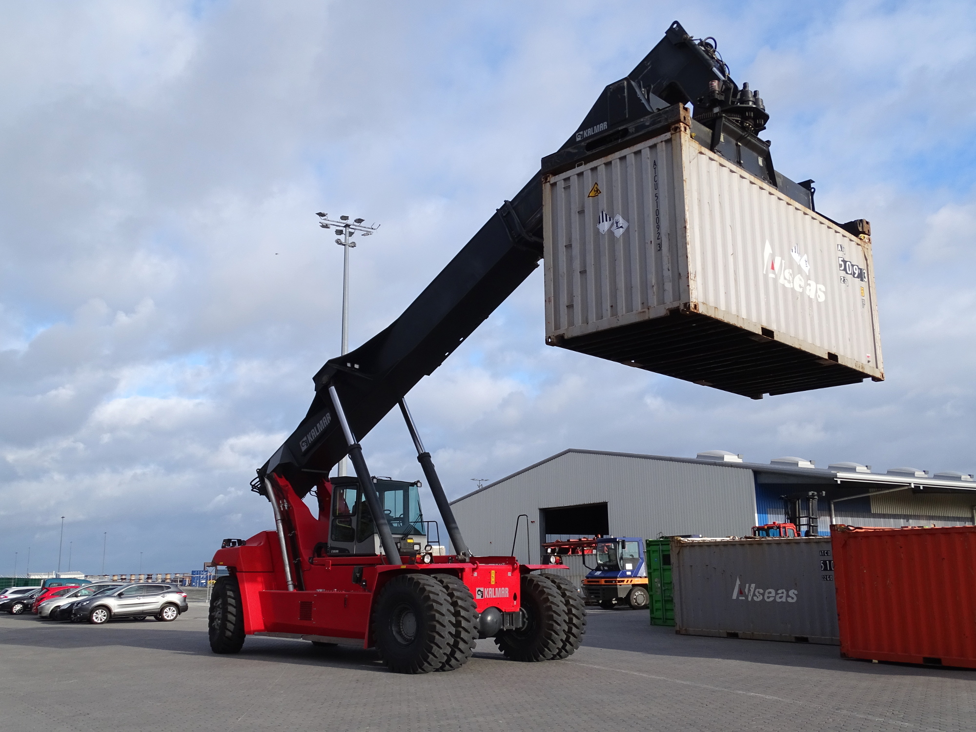 Sassnitz-Mukran, 26. Oktober 2018 - Am 15.10.2018 wurde der Kalmar Reachstacker mit einem Eigengewicht von fast 70 Tonnen bei Mukran Port Terminals angeliefert.