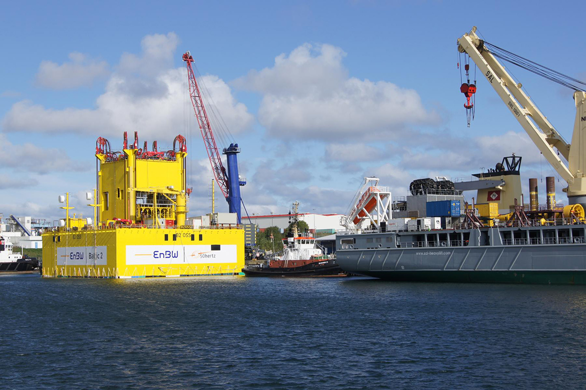 The newly built Offshore Terminal South has already proved its efficiency during the construction of the offshore wind farms „EnBW Baltic 2“ and "Wikinger". The “Arkona Becken” offshore wind farm is currently being completed by the energy supplier E.ON.